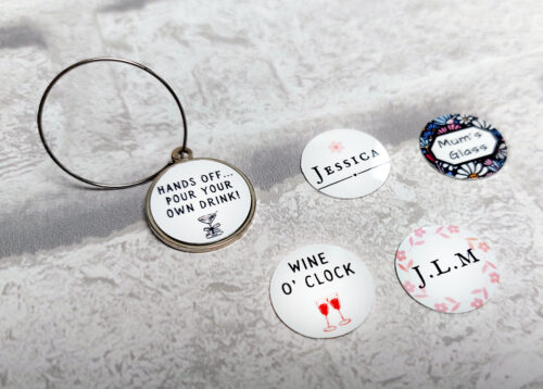 - OVERSTOCK!! clearance Wine Glass Charm with 18mm White 0.5mm insert, pack of 5 (limited packs) – 40% OFF