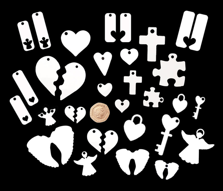 This month we’re giving you one of our charms that can be used as a key ring or jewelry pendant in either double sided white 1.1mm or 0.5 or 0.7mm metal. It will be ‘Love’ themed, so could be a heart or one of our NEW bar charms with cutout – pot luck as we are cutting a selection and will pop one in every order! We are also popping in a 12mm split ring as these charms make great little product tags, key rings or can be added to existing jewelry items!