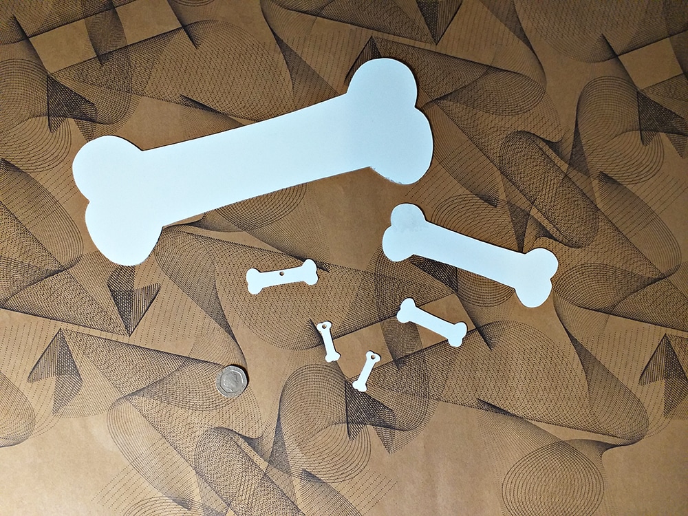 Giant A4 and XXL A5 sizes can become cage and kennel markers, signs or wall art (they can be added to our Panel hangers with the planks and arrows) , while the XL A6 size is perfect for a bookmark. Try using the Medium size as a Fridge Magnet or label, or pair with our House shape (printed ups s a kennel) to create great – our dogs live here – Mini Panel hanger! the Small, Tiny, and Extra Tiny sizes as key rings, charms, and pendants!