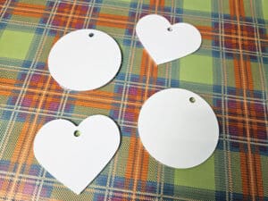 Brilliant 76 mm Circles and 76 x 66 mm Hearts in Double Sided Xtra Glossy White in Xtra Thick 2.2 mm thickness for an xtra luxury touch!