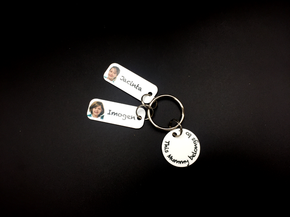 Create a perfectly personalised keepsake keyring with photos of children or grandchildren on. Can also be used with drawings or handprints, and why not use children’s own handwriting to create a truly unique piece? The circular disk is perfect for “This Mummy belongs to…” or “This Daddy belongs to…”