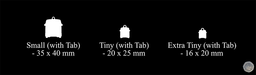 • Extra Tiny (with Tab) – 16 x 20 mm