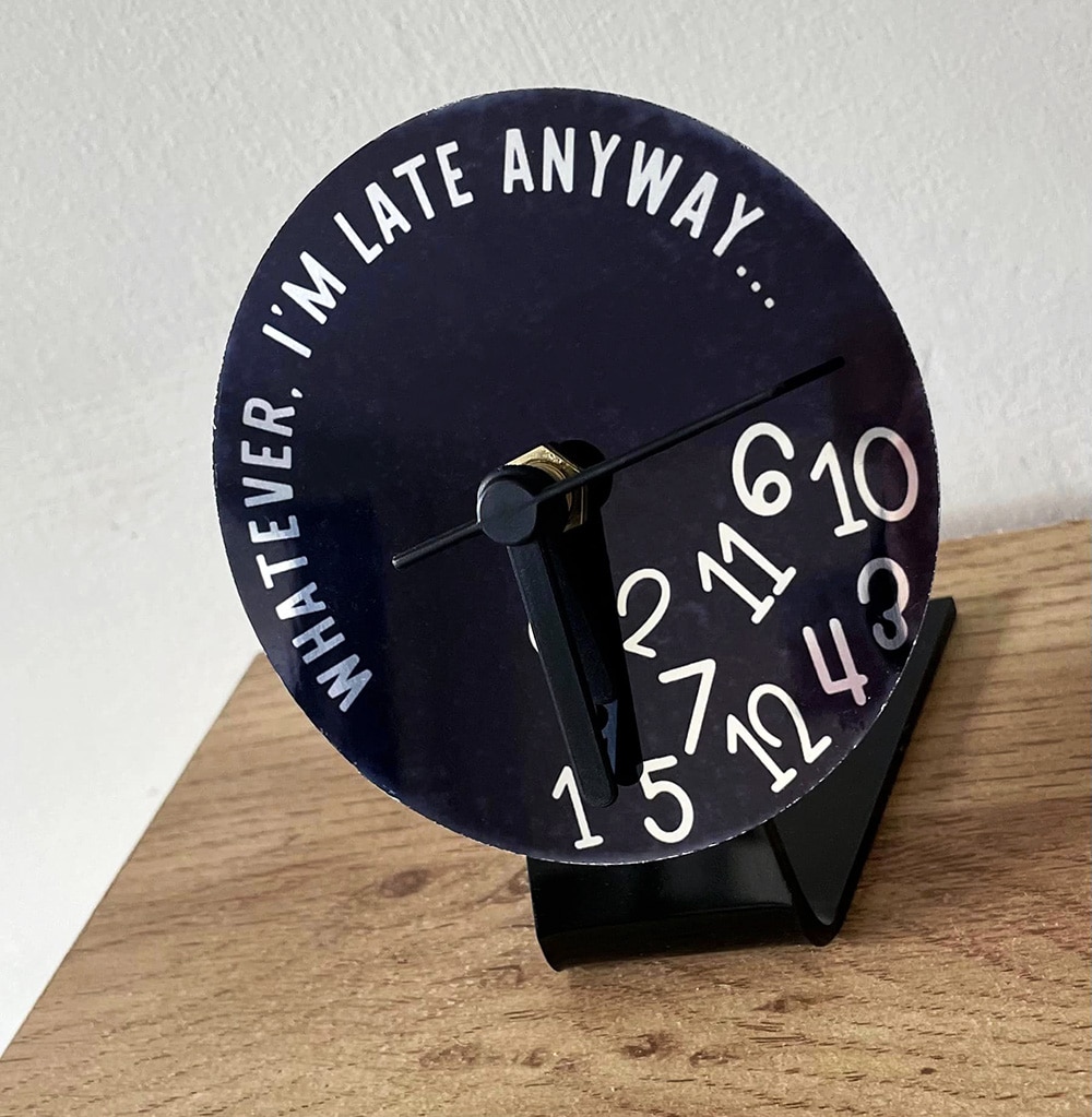Add an optional small printable metal piece that clips into the mech, to create a freestanding desk clock or for a more imposing finished desk clock – add a more substantial printable metal strip, with a pre-drilled slot to fit over your mech to fix at the height you prefer and pre-scored to bend into the angle you prefer – creating a classy stand for your finished metal timepiece! Both metal stands are printable (maybe add your logo or company website for extra marketing opportunities?) or secure them reverse side up for a professional integrated look!